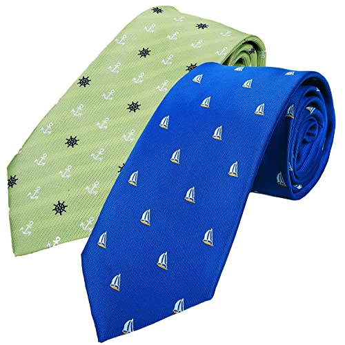 BEAT 2 Cravatte Microfibra Jacquard in Confezione di Regalo Moda Uomo Design Timone e Ancora con Barca a Vela