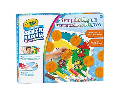 Facile e divertente: basta scegliere lo stampino e timbrare sulla carta speciale Color Wonder per creare tante divertenti scenette