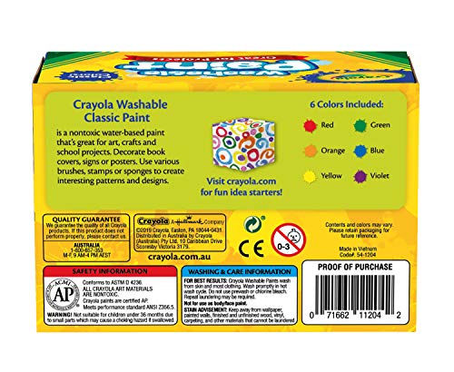 CRAYOLA - Tempere Lavabili per Bambini, 6 Colori Classici