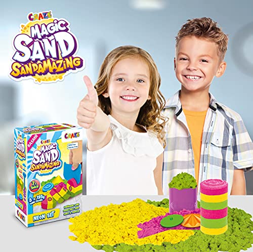CRAZE Magic Sand Sand Amazing Neon Set di Sabbia Magica per Bambini 125 g Sabbia cinetica per modellismo, 7 Accessori Smart Sand Tempo Libero Creativo Giochi creativi per Bambini 32374