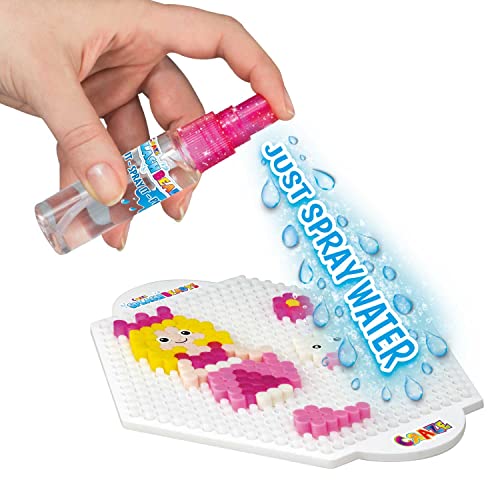 CONTENUTO: 1 tavola Princess, 1 modello piccolo, Splash Beadys in diversi colori, 1 spray d'acqua, adesivi, 1 manuale di istruzioni, perline d'acqua alte 5 mm.