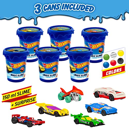 IL REGALO IDEALE: questo slime per bambini è un regalo di compleanno ideale per bambini e fan dei Hot Wheels!Contenuto: 3 barattoli di melma giocattolo da 150 gr, 1 di 6 macchinine da collezionare
