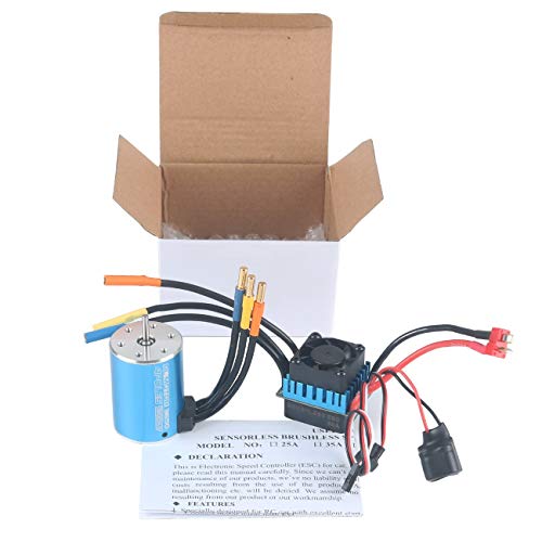 Crazepony-UK 3650 3100KV Sensorless Brushless Motore Outrunner Motor And 60A ESC Electronic Speed Controller 3.175mm Shaft Splashproof for 1/10 1:10 RC Racing Car off-Road Truck Vehicle