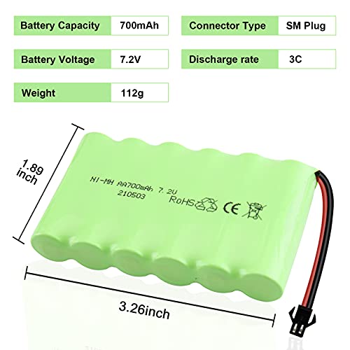 Crazepony-UK 2PCS 7.2V 700mAh Battery Pack with SM Plug for 4WD RC Car repalcement batteria
