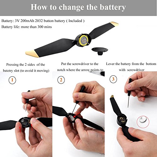 Battery and using time:3V 200mAh 2032 button battery,using More than 300 mins(it means it will be used for 12 times if each flying is about 25 mins)