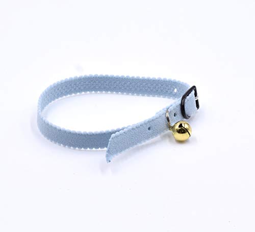 CRAZY FAMILY SHOP Collare per Gatto, in Morbido E Resistente Velluto Elasticizzato, con Campanello Dorato (Azzurro)