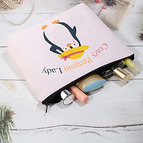 Crazy Penguin Lady Gifts Penguin Makeup Bag Penguin Lady Cosmetic Bag Penguin Regali per il suo amante dei pinguini Regali Penguin Zipper Pouch Borsa da viaggio, Pinguino Lady Bag