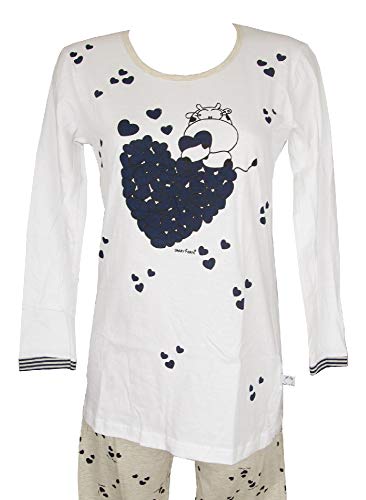 Crazy Farm Pigiama Bambina Ragazza Cotone Manica Lunga Girocollo Articolo 32018, Panna Cuoricini Blu, Anni 11/12