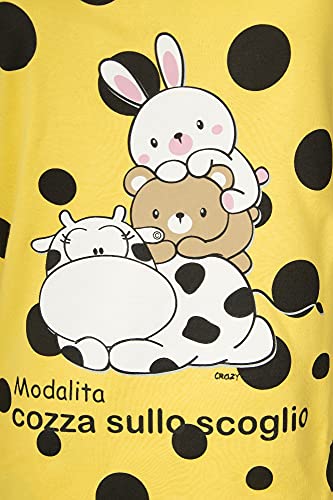 CRAZY FARM Pigiama Donna Cotone Invernale Interlock Manica Lunga Collo Serafino Articolo 15640 MODALITA COZZA sullo Scoglio, 2134 Giallo modalità cozza sullo Scoglio, S