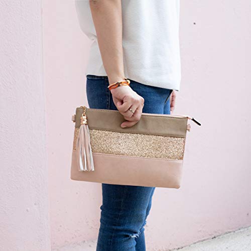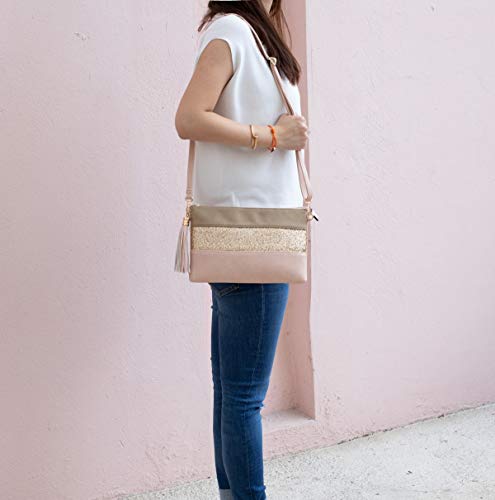 CRAZYCHIC - Pochette Clutch Bag Paillettes Donna - Borsa Tracolla Spalla PU Pelle Morbida Brillantini - Borsetta Strisce Multicolore Casual - Crossbody Messenger Bag - Sacchetto Borsello Moda - Rosa