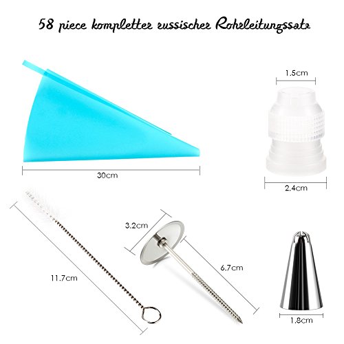 CrazyFire sac à Poche Set, 58 Pezzi Set per Decorare Torte, Deko Back Set per Decorare e Decorare Le Torte, Torte di, Decorating Tools in Acciaio Inox 58 Spritztüllen Set
