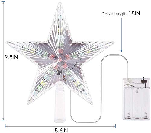 Stella a 5 punte alta 9,5 pollici, viene fornita con un cono, in modo da poterlo collegare facilmente alla cima dell'albero. Perfetto per un regalo di Natale o per decorare il tuo desktop a casa o fuori.
