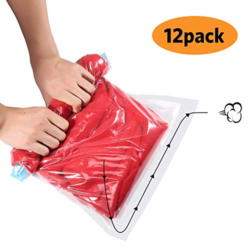 CrazyFire Sacchetti Sottovuoto Sacchetti Arrotolato a Mano Buste Impermeabili e Trasparenti Senza Pompa, per Viaggi, Rulli di Mano e Risparmio di Spazio per Vestiti Asciugamani(Set da 12 Pz)