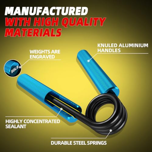 【Qualità Premium e durevole】: Realizzato con manici zigrinati in alluminio resistente e molla ad alta resistenza. I manici in alluminio sono resistenti ma leggeri, più delicati per le mani, pur garantendo un ottimo allenamento.
