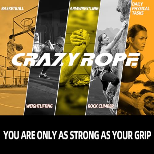 【Attrezzatura ideale per l'allenamento】:Il rafforzatore di presa per le mani CRAZYROPE è eccellente per rafforzare mani, avambracci, polsi e dita. Facile ed efficace, aiuta a rafforzare la presa, ad alleviare lo stress e ad aumentare la resistenza. Ideale per chiunque voglia sviluppare e mantenere mani forti e sane.