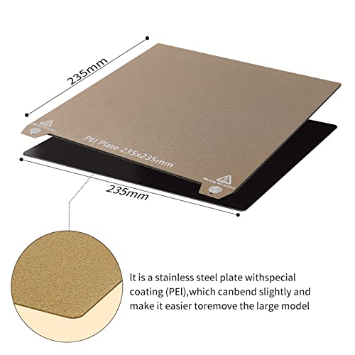 Ampia compatibilità: PEI 235 x 235 compatibile con Creality Ender 3 / Ender 3 Pro/Ender 3S / Ender 3v2 / CR 20/CR 20 Pro/Ender 5/Ender 5 Pro.