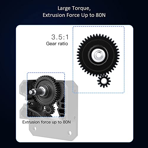 【Design a doppia trasmissione】Con la struttura a doppia trasmissione, il filamento può essere afferrato molto più saldamente con meno deformazioni, quindi non si incepperà tanto nel tubo, nell'ugello o nell'hotend che consente un'alimentazione più affidabile e stabile.