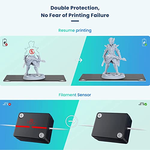Ripresa della pressione e rilevamento di rotture del filamento: Ender 3 S1 supporta le funzioni di ripresa della pressione e rilevamento di rotture del filamento. Nelle situazioni di interruzione di corrente o rottura del filamento, Ender 3 S1 può registrare con precisione i dati di stampa per evitare lo spreco di filamenti e del tempo a causa di incidenti.