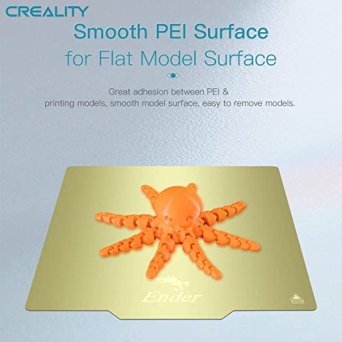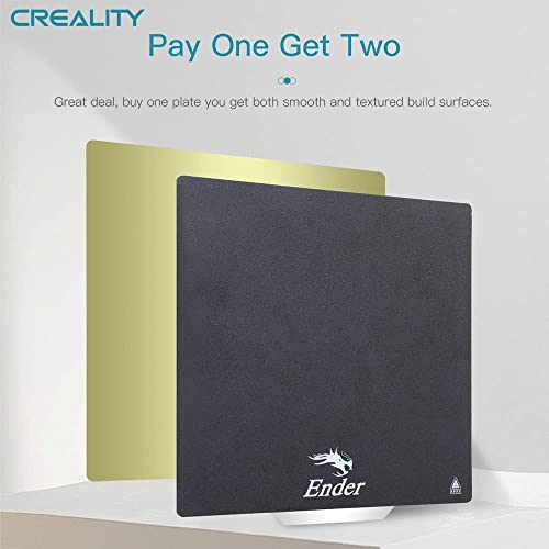 【Garanzia di qualità】 Stampante 3D Creality ufficiale al 100% PEI Foglio piattaforma riscaldata flessibile magnetica rimovibile a doppia faccia. Leviga un lato con PEl rivestito e testurizzato l'altro lato con adesivo testurizzato. La piastra in acciaio per molle può resistere ai numerosi cicli di calore che un letto di stampante 3D attraversa da una stampa all'altra.