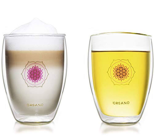 Creano Set di 2 Bicchiere Termico "fiore della vita", Bicchiere di tè Doppio Vetro, Latte Macchiato, Tazza Termica | 250ml in Una Scatola da Regalo Esclusiva