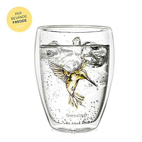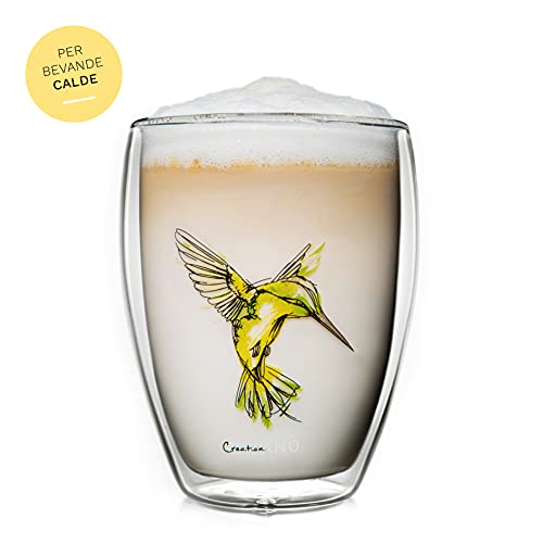 Creano Bicchiere Termico Hummi, Bicchiere di tè Doppio Vetro, Latte Macchiato, Tazza Termica Colibri | 250ml in Una Scatola da Regalo Esclusiva, Giallo