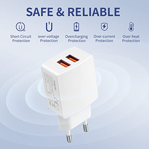 Adattatore compatibile multi-dispositivo: il caricatore da muro è adatto per caricare la maggior parte dei dispositivi alimentati tramite USB, come smartphone, smartwatch, power bank, radio, altoparlanti Bluetooth e auricolari. Tutto ciò di cui hai bisogno sono i cavi giusti per i tuoi vari dispositivi elettronici.