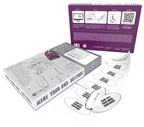 STAMPATE SULLA CARTA PER SPILLE - Stampate i motivi per le vostre spille sulla carta per spille con cerchi perforati, inclusa alla consegna. Successivamente, staccate i cerchi di carta lungo il bordo perforato con il pollice e l'indice, inseriteli tra le due parti delle spille e premete! E se desiderate abbandonare completamente PC e stampante, potete disegnare a mano le vostre personalissime spille.