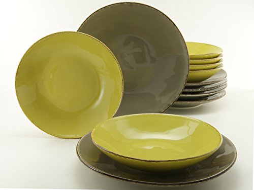 Creatable, 14258, Serie Organic Elements, Tafelservice 12 Teilig Servizio da tavola, Porcellana, Schlamm/Oliv, 33 x 24 x 34 cm, unità