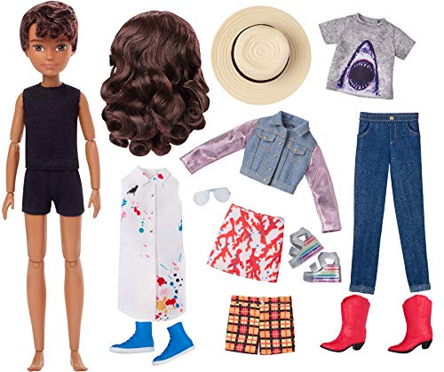 Il kit di personaggi deluxe dc-220 include una bambola, una parrucca, dei vestiti e degli accessori che possono essere scambiati e abbinati tra loro per creare più di 100 personaggi e look!