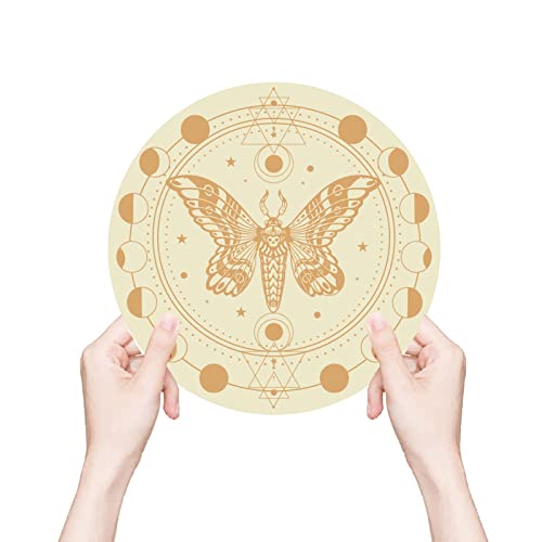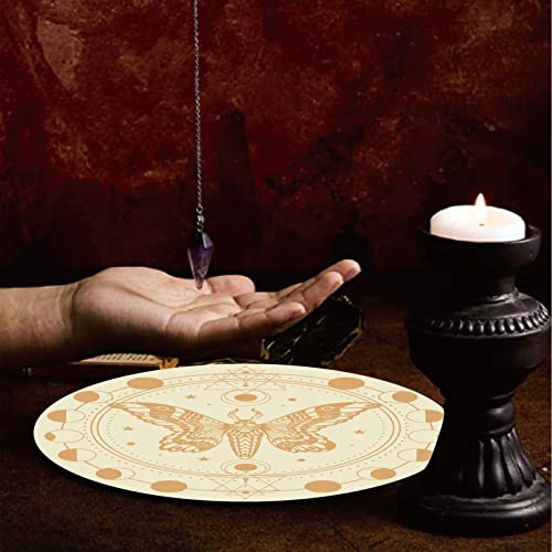 Tavola a pendolo per divinazione: la tavola a pendolo in legno è progettata con fasi lunari, che possono aiutarti a prendere decisioni quando sei aggrovigliato e aiutarti a raggiungere il tuo destino. L'immagine della farfalla e del cranio rende questa tavola altare della strega ancora più misteriosa e magica.