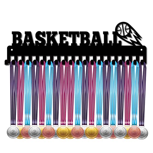 CREATCABIN Porta Medaglie Espositore Appendiabiti Sport Basket Supporto da Parete in Metallo con 20 Ganci per Gara Calcio Ginnastica Ginnasta Oltre 60 Medaglie Nero 15.7 x 4.8 Pollici