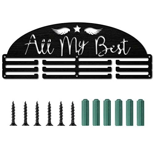 CREATCABIN All My Best Porta Medaglie in Legno Appendiabiti Sportive Espositore Supporto Montaggio A Parete Appendiabiti Nero Cornice per Casa Badge 3 Linee Atleti Medaglia Corsa Oltre 60 medaglie