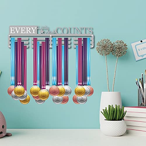 CREATCABIN Porta Medaglie Sport Ogni Piccolo Passo Conta Start Awards Espositore da Parete Appendiabiti Decorazione per Champions Home Badge 3 piolo Medaglia 60 medaglie Giochi 15.7x4.1 Pollici