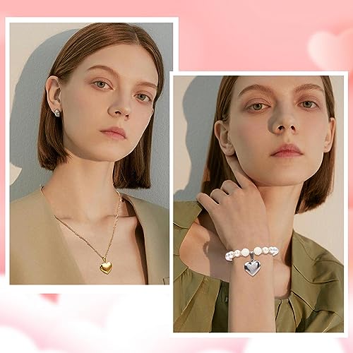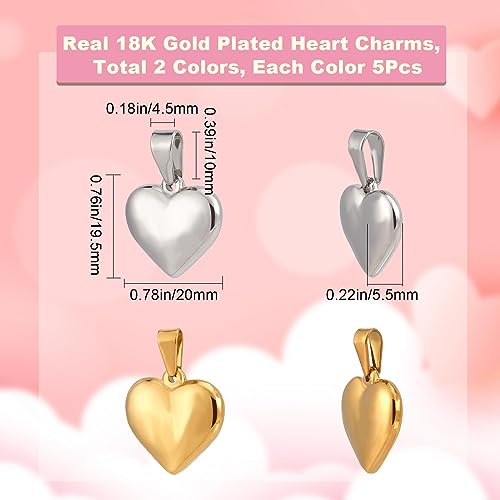 CREATCABIN 1 Scatola 10 Pezzi Ciondoli A Cuore In Acciaio Inossidabile Colore Argento Dorato 3D Ciondoli A Cuore D'Amore con Passante per La Festa Della Mamma Regali di San Collana Bracciale 19.5x20mm