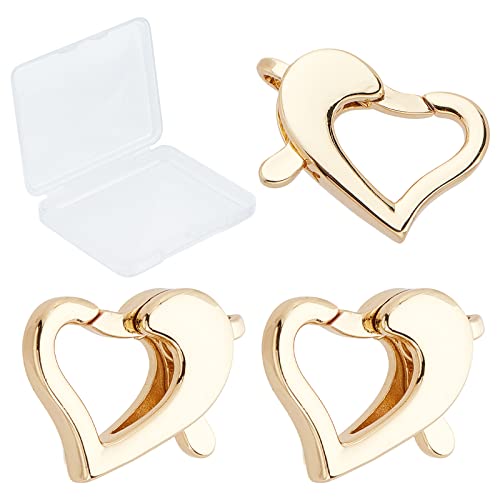 CREATCABIN 1 Scatola 3 Pezzi Fermagli A Forma di Cuore in Ottone Placcato Oro 16k, Connettori A Forma di Artiglio, estremità del Cavo, Clip, Gancio per Gioielli Fai da Te, Regali di San, Collane,