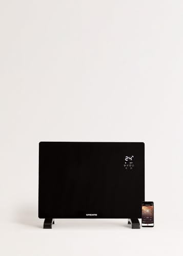 CREATE/EVERWARM GPH1500 / Termoconvettore elettrico in vetro nero, con WiFi, IP24, LED touchscreen, sistema di sicurezza