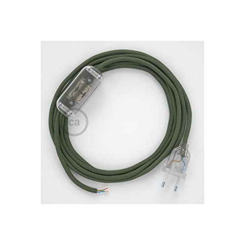 Creative cables - Cablaggio per Lampada, Cavo RC63 Cotone Verde Grigio 1,80 m. Scegli Il Colore dell'interuttore e della Spina. - Trasparente