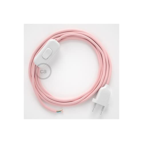 Creative cables Cablaggio per Lampada, Cavo RM16 Effetto Seta Rosa Baby 1,80 m. Scegli Il Colore dell'interuttore e della Spina. - Bianco
