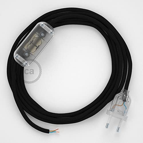 Creative cables - Cablaggio per Lampada, Cavo RM04 Effetto Seta Nero 1,80 m. Scegli Il Colore dell'interuttore e della Spina. - Trasparente