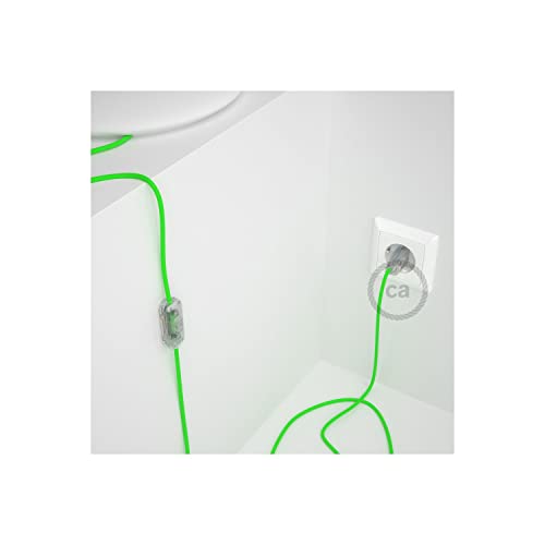 Creative cables Cablaggio per Lampada, Cavo RF06 Effetto Seta Verde Fluo 1,80 m. Scegli Il Colore dell'interuttore e della Spina. - Trasparente