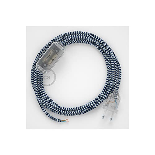 Creative cables Cablaggio per Lampada, Cavo RZ12 Effetto Seta Zigzag Blu 1,80 m. Scegli Il Colore dell'interuttore e della Spina. - Trasparente