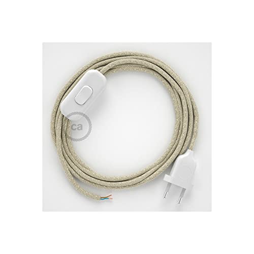 Creative cables - Cablaggio per Lampada, Cavo RN01 Lino Naturale Neutro 1,80 m. Scegli Il Colore dell'interuttore e della Spina. - Bianco