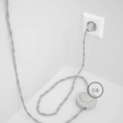 Creative cables Cablaggio per piantana, Cavo TM02 Effetto Seta Argento 3 m. Scegli Il Colore dell'interruttore e della Spina. - Bianco
