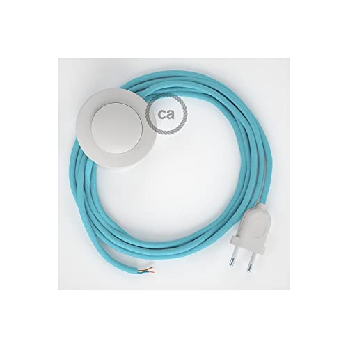 Creative cables - Cablaggio per piantana, Cavo RM17 Effetto Seta Azzurro Baby 3 m. Scegli Il Colore dell'interruttore e della Spina. - Bianco