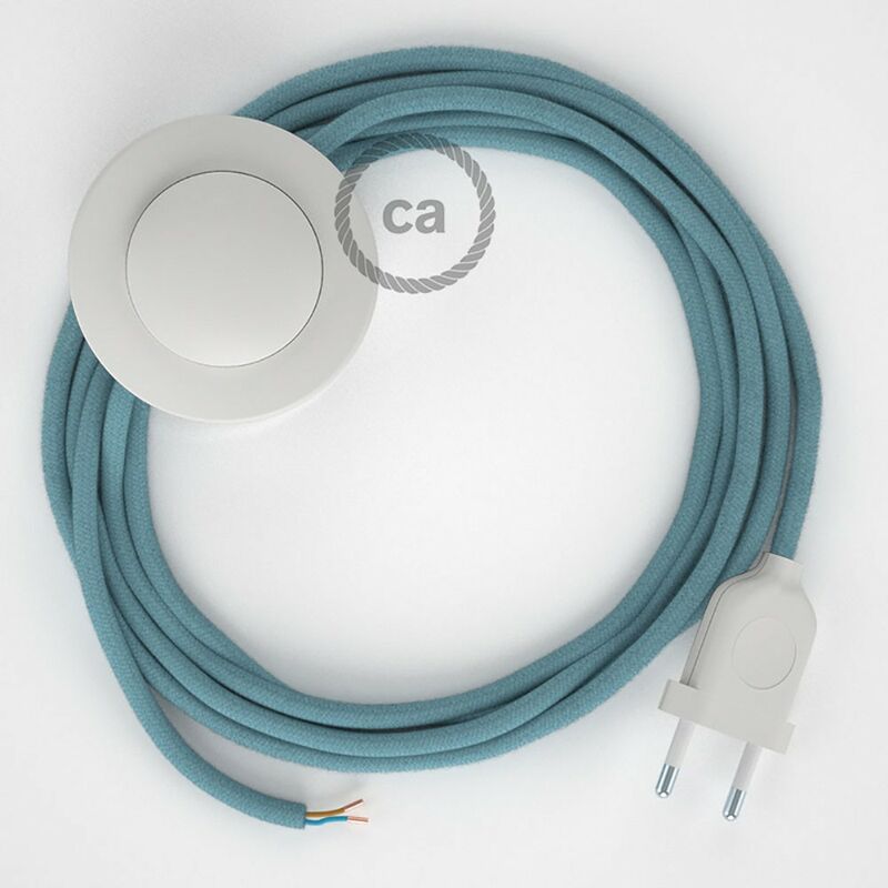 Rinnova una lampada da terra, dai nuovo colore ad una piantana grazie al cavo Rotondo in Cotone RC53 Oceano con spina e interruttore. Il cablaggio elettrico Creative-Cables per lampada da terra è assemblato in Italia partendo da componenti 100% Made in Italy per offrirti il massimo della qualità e della sicurezza. Lungo 300 centimetri, si adatta perfettamente a qualsiasi tipo di piantana. Scegli il colore dell'interruttore e della spina: - bianco, la soluzione più classica;