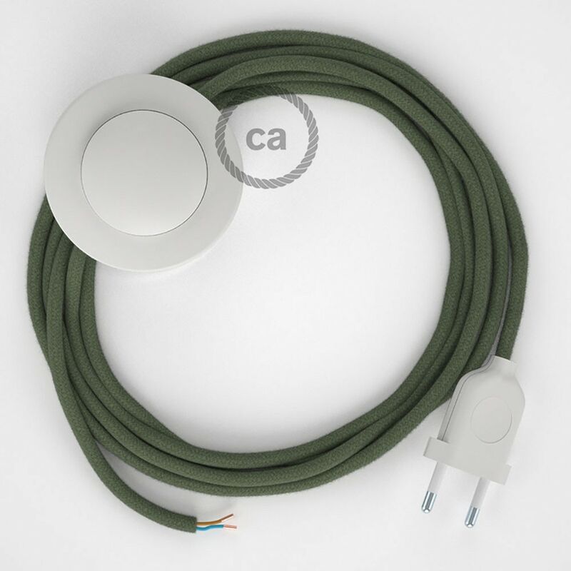 Rinnova una lampada da terra, dai nuovo colore ad una piantana grazie al cavo Rotondo in Cotone RC63 Verde Grigio con spina e interruttore. Il cablaggio elettrico Creative-Cables per lampada da terra è assemblato in Italia partendo da componenti 100% Made in Italy per offrirti il massimo della qualità e della sicurezza. Lungo 300 centimetri, si adatta perfettamente a qualsiasi tipo di piantana. Scegli il colore dell'interruttore e della spina: - bianco, la soluzione più classica;