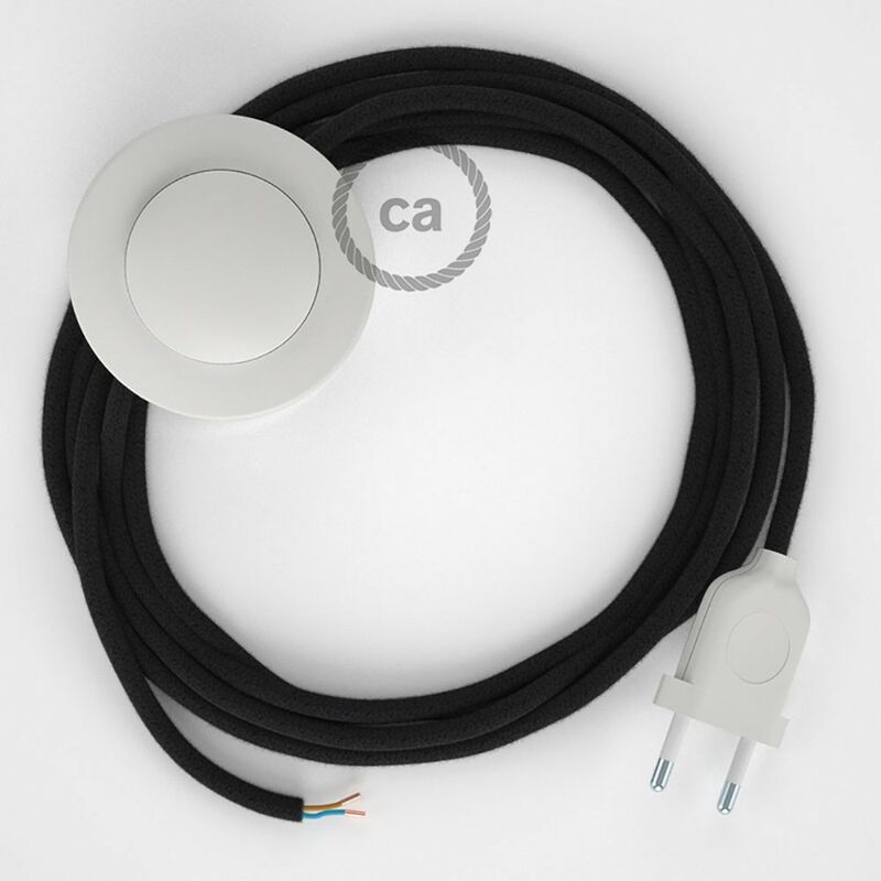 Rinnova una lampada da terra, dai nuovo colore ad una piantana grazie al cavo Rotondo in Cotone RC04 Nero con spina e interruttore. Il cablaggio elettrico Creative-Cables per lampada da terra è assemblato in Italia partendo da componenti 100% Made in Italy per offrirti il massimo della qualità e della sicurezza. Lungo 300 centimetri, si adatta perfettamente a qualsiasi tipo di piantana. Scegli il colore dell'interruttore e della spina: - bianco, la soluzione più classica;