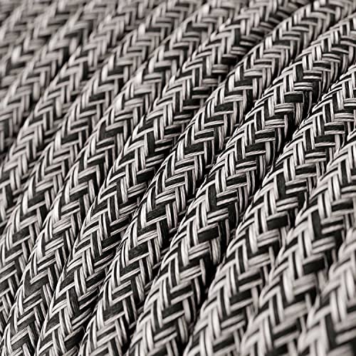Creative cables Cavo Elettrico Rotondo Rivestito in Cotone Onyx Tweed Color Nero, Lino Naturale e Rifinitura Glitter RS81-10 Metri, 3x0.75
