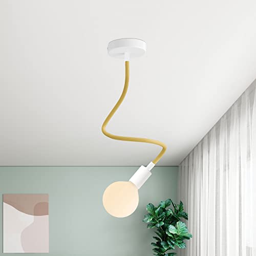 Creative cables - Kit Creative Flex tubo flessibile rivestito in tessuto RM79 Mostarda con terminali metallici - 60 cm, Bianco opaco