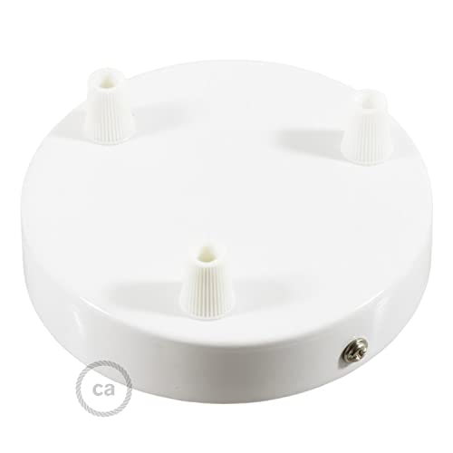 Creative cables - Kit rosone cilindrico in Metallo a 3 Fori - Conico, Bianco Lucido